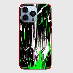 Зелёно-белые вертикальные полосы на чёрном фоне Чехол iPhone 13 Pro815 Р