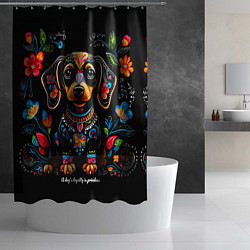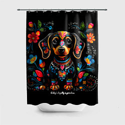 Такса с цветами и узорами Шторка для ванной2055 Р