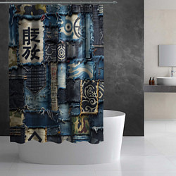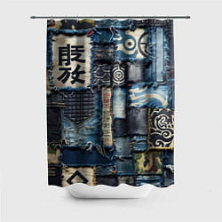 Иероглифы на пэчворк дениме Шторка для ванной2055 Р