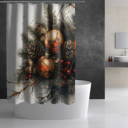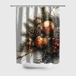 Шторка для ванной комнаты Новогодние шары и шишки