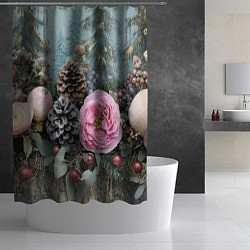 Новогодние цветы и шишки Шторка для ванной2055 Р