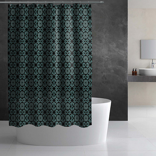 Шторка для ванной комнаты Чёрный с синим узором патерн