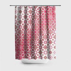 Красно-розовый цветочный паттерн узор Шторка для ванной2055 Р
