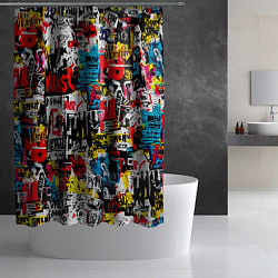 Пиксели и полосы орнамент осенний рябиновый Шторка для ванной2055 Р