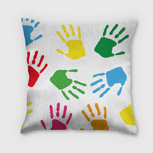 Квадратная подушка для сна Цветные ладошки - Детский узор