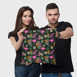 1075 РФламинго и листья на темно-зеленом Подушка квадратная