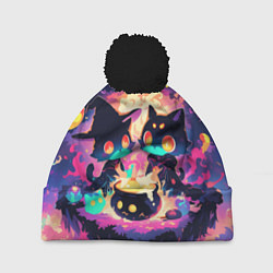 Неоновый и переливающийся киберпанк узор Шапка c помпоном825 Р