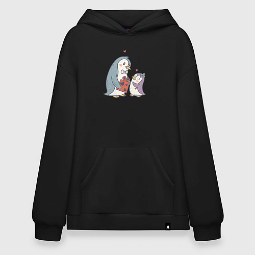 Толстовка оверсайз с капюшоном Парочка влюбленных пингвинов