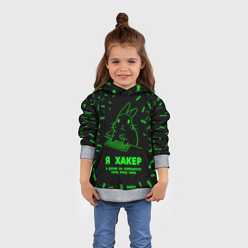 Детская 3D-толстовка с капюшоном с принтом «Кролик хакер» из коллекции «Мемы» по цене 2290 рублей. Особенности детской толстовки — капюшон на шнурке, манжеты на рукавах, манжета по низу, карманы. Материал — полиэфир, в составе материала — 100% полиэстер. Доступен к покупке в 3 цветовых вариантах: 3d-меланж, 3d-черный, 3d-белый. В наличии 15 размеров для заказа: 86, 92, 98, 104, 110, 116, 122, 128, 134, 140, 146, 152, 158, 164, 170. Для заказа выберите вариант — размер и цвет изделия, добавьте позицию в корзину и оформите заказ.