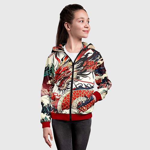 Детская 3D-толстовка на молнии Красный дракон в японском стиле ирезуми