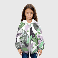 Зелёные, серые, голубые, сиреневые листья на белом Детская куртка4890 Р