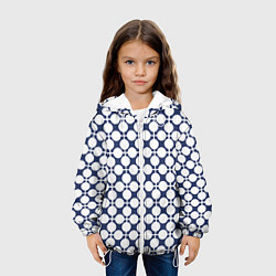 Белые цветы ромашки на черном в мелкий горошек Детская куртка5670 Р
