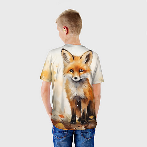 Детская 3D-футболка Лиса в осеннем лесу акварель