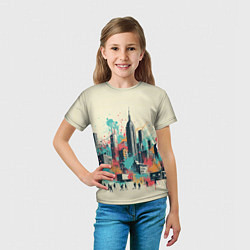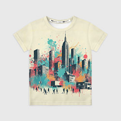 Силуэты людей и небоскребов в брызгах краски Детская футболка-34%825 Р1240 Р