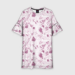 Детская 3D-футболка Мемфис бордовый на белом геометрический клетчатый