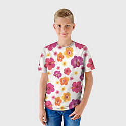 Разноцветные цветы бирюзовые малиновые синие Детская футболка-34%825 Р1240 Р