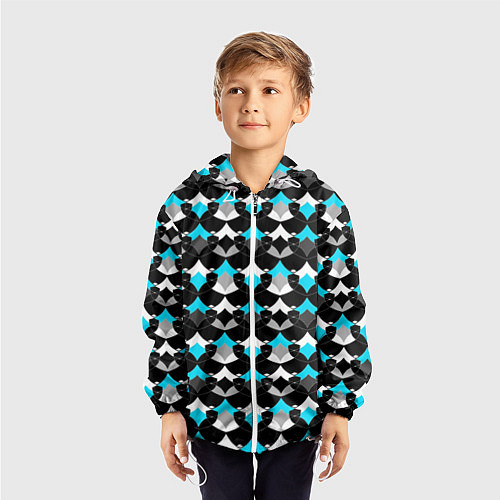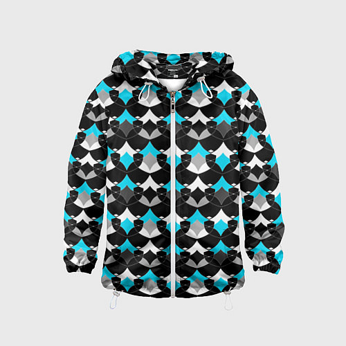 Детская 3D-ветровка с капюшоном Синий с черным и белым геометрический узор
