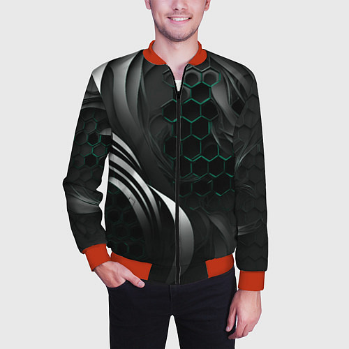 Мужской 3D-бомбер на молнии Объемные бирюзовые плиты и черные линии