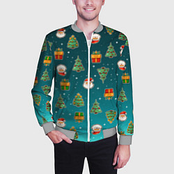 Подарки новогодние елки и Санта - паттерн градиент Мужской бомбер-11%3590 Р3990 Р