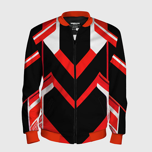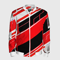 Мужской 3D-бомбер на молнии Красно-белые полосы и чёрный фон