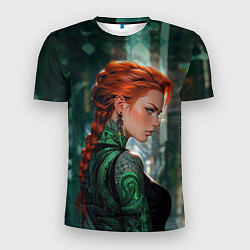 Мужской 3D-лонгслив Рыжая девушка с неоновыми татуировками