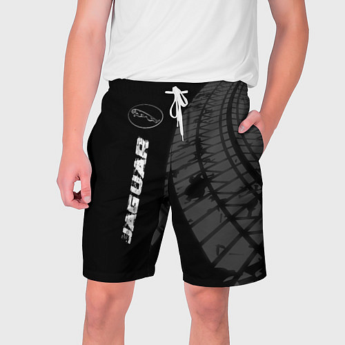 Мужские 3D-шорты на шнурке Jaguar speed на темном фоне со следами шин по-верт