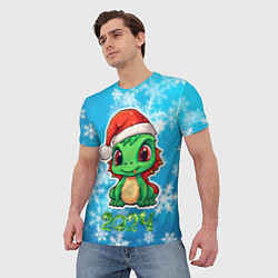 -27%1330 Р1800 РМаленький зеленый новогодний дракон на фоне снега Мужская футболка