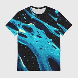 Синие волны краски на черном Мужская футболка-27%1135 Р1535 Р
