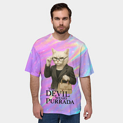 Дьявол носит Пурада пародия с белой кошкой Мужская футболка оверсайз1330 Р