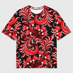 -51%1330 Р2675 РХохлома - красная роспись Мужская футболка оверсайз