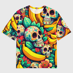 Colorfull skulls and bananas - pop art pattern Мужская футболка оверсайз-50%1240 Р2480 Р