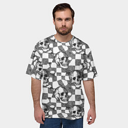 Черепа и клетчатый фон с дырами Мужская футболка оверсайз-51%1260 Р2535 Р