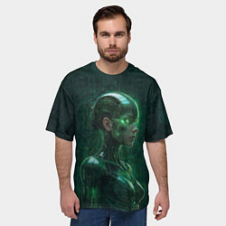 Девушка-андроид в зелёных тонах Мужская футболка оверсайз-50%1240 Р2480 Р