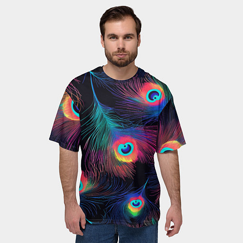 Мужская 3D-футболка оверсайз Павлиньи перья - разные оттенки