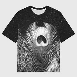 Изогнутые белые перья павлина - чб иллюстрация Мужская футболка оверсайз-50%1240 Р2480 Р