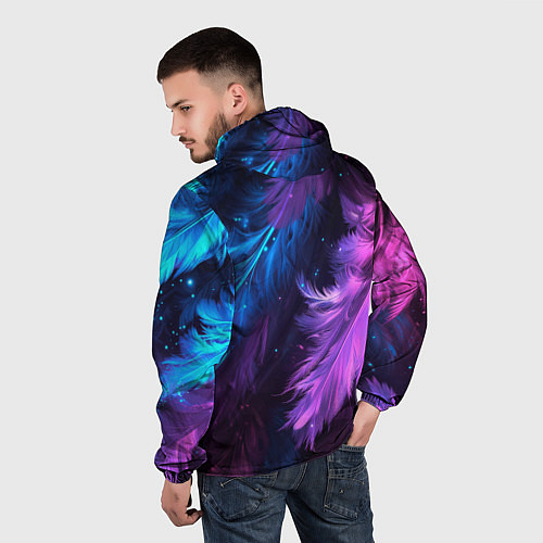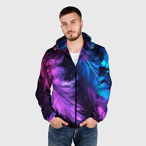Мужская 3D-ветровка с капюшоном Искрящиеся перья в розовых и голубых оттенках