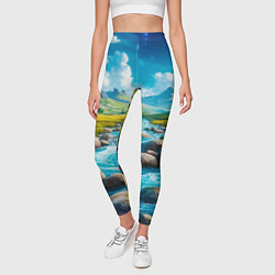 1755 РПейзаж художественный горы речка камни Женские легинсы