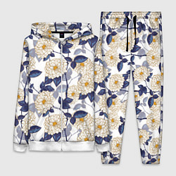 -25%5220 Р6945 РЦветы с синими листьями Женский костюм