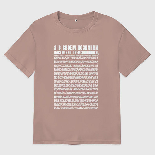 Женская оверсайз футболка с принтом «Бесконечное вечное» из коллекции «Прикольные надписи» по цене 1280 рублей. Особенности женской футболки оверсайз — круглая горловина, свободный крой. Материал — хлопок, в составе материала — 100% хлопок. Доступен к покупке в 6 цветовых вариантах: пыльно-розовый, авокадо, меланж, тёмно-синий, красный, черный. В наличии 8 размеров для заказа: 2XS, XS, S, M, L, XL, 2XL, 3XL. Для заказа выберите вариант — размер и цвет изделия, добавьте позицию в корзину и оформите заказ.